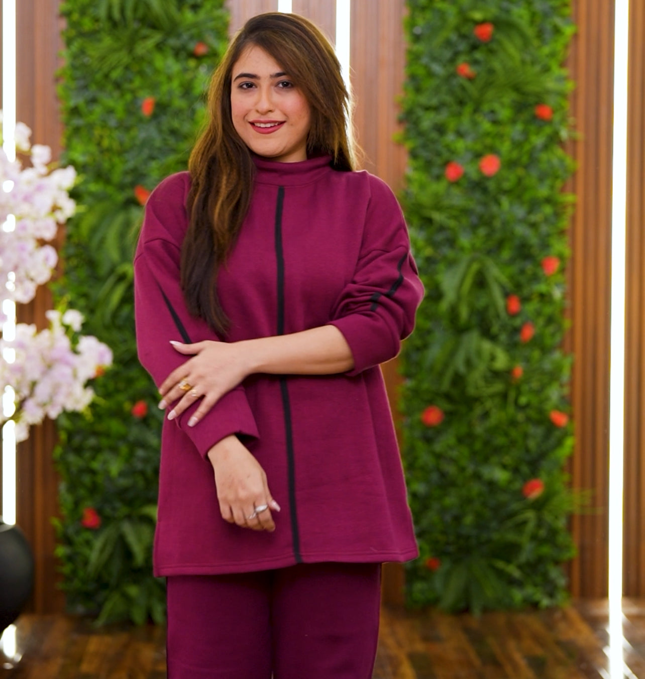 2 Pcs Stripe Winter Fleece Co-ord Set