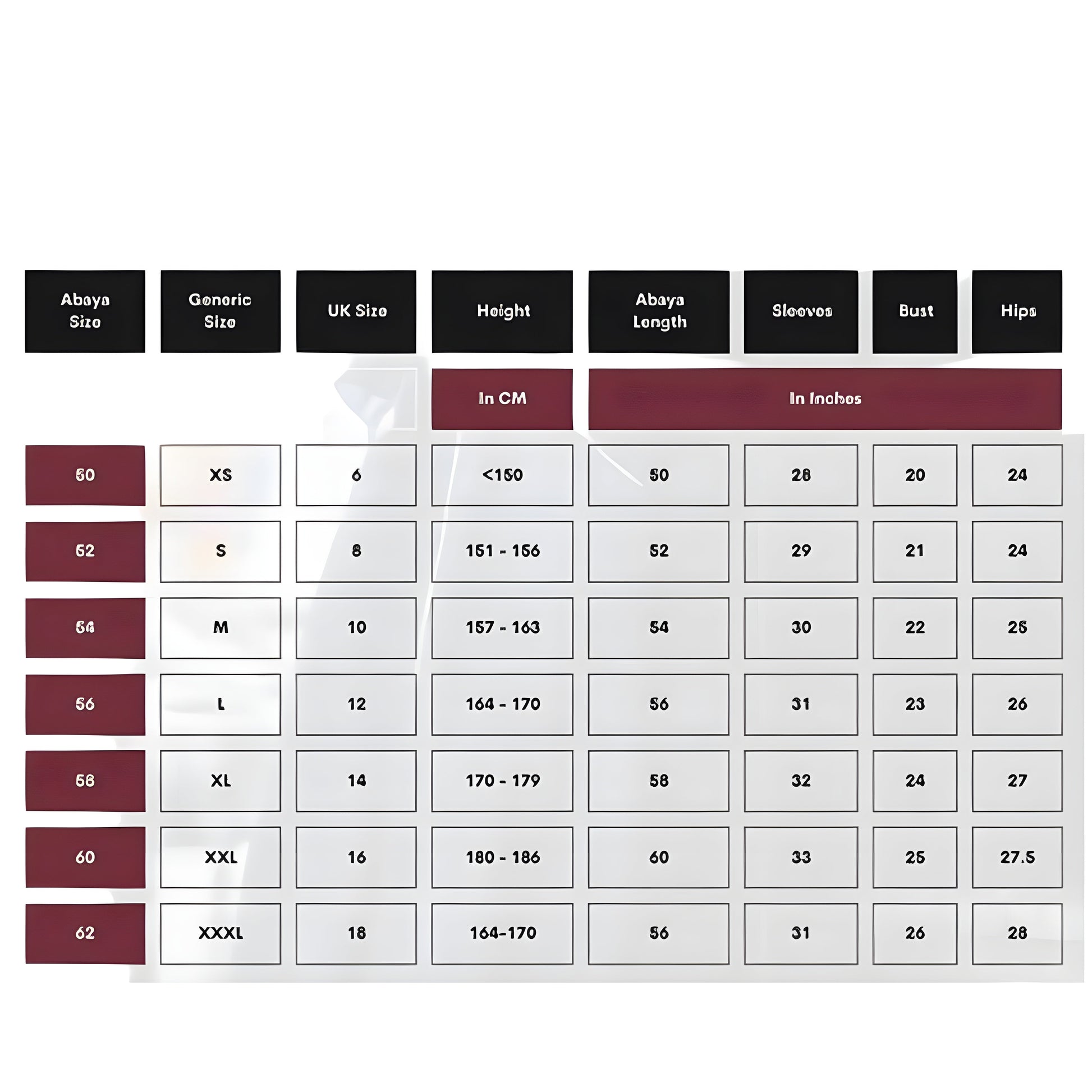 Upgrade your style with our Buy Pack of 3 Premium Georgette Abaya with Stoles, designed for fashionable Pakistani women! Made from high-quality, lightweight georgette, these abayas ensure comfort and elegance for daily wear or special occasions. Each abaya measures 55 inches long and 23 inches wide, paired with a 30x60-inch stole. Available in all sizes (Abaya: 50–62; Generic: XS–XXXL; UK: 6–18) for a perfect fit. Enjoy nationwide delivery and a 14-day return/exchange policy. Note: Colors may slightly vary due to lighting or monitor settings.