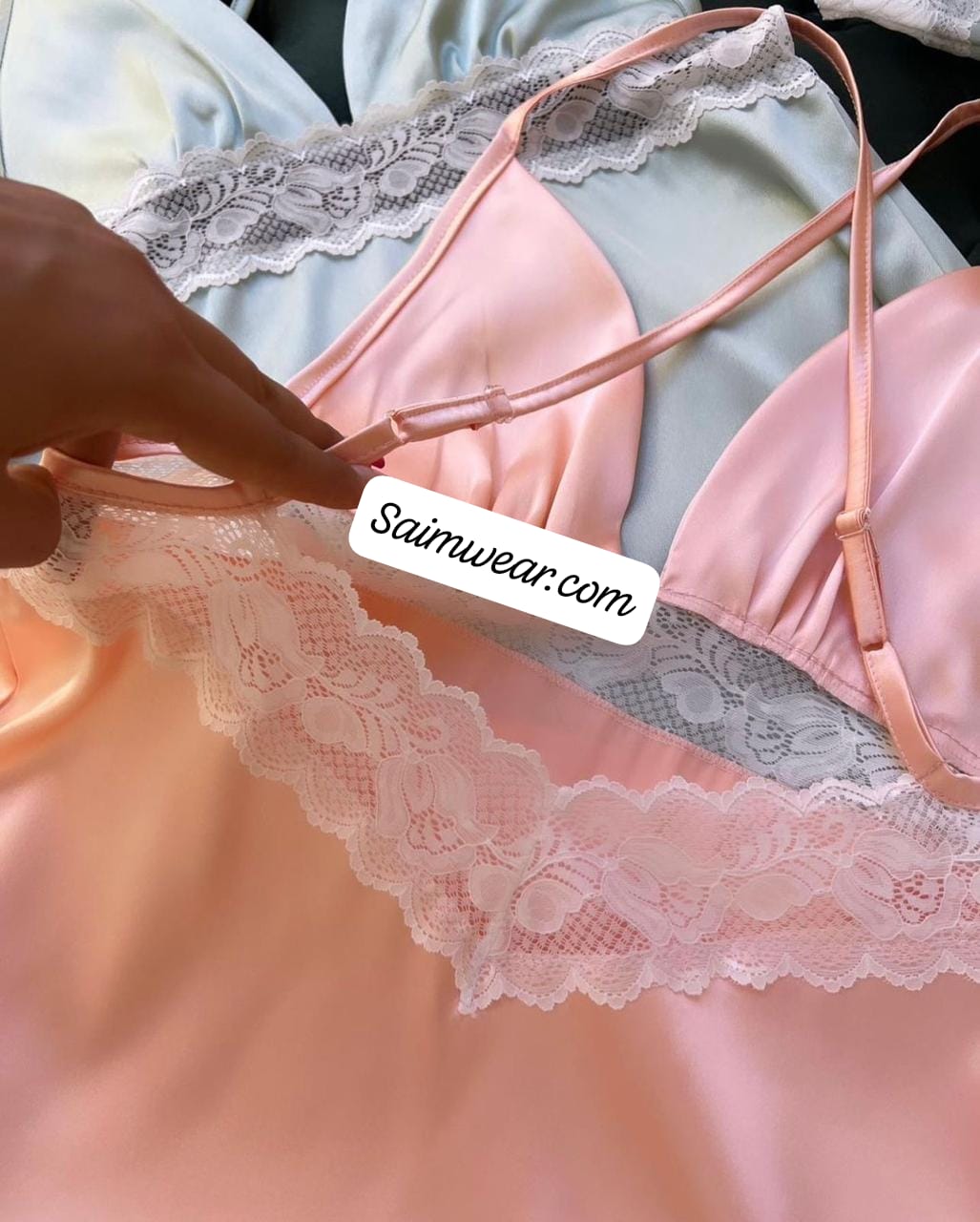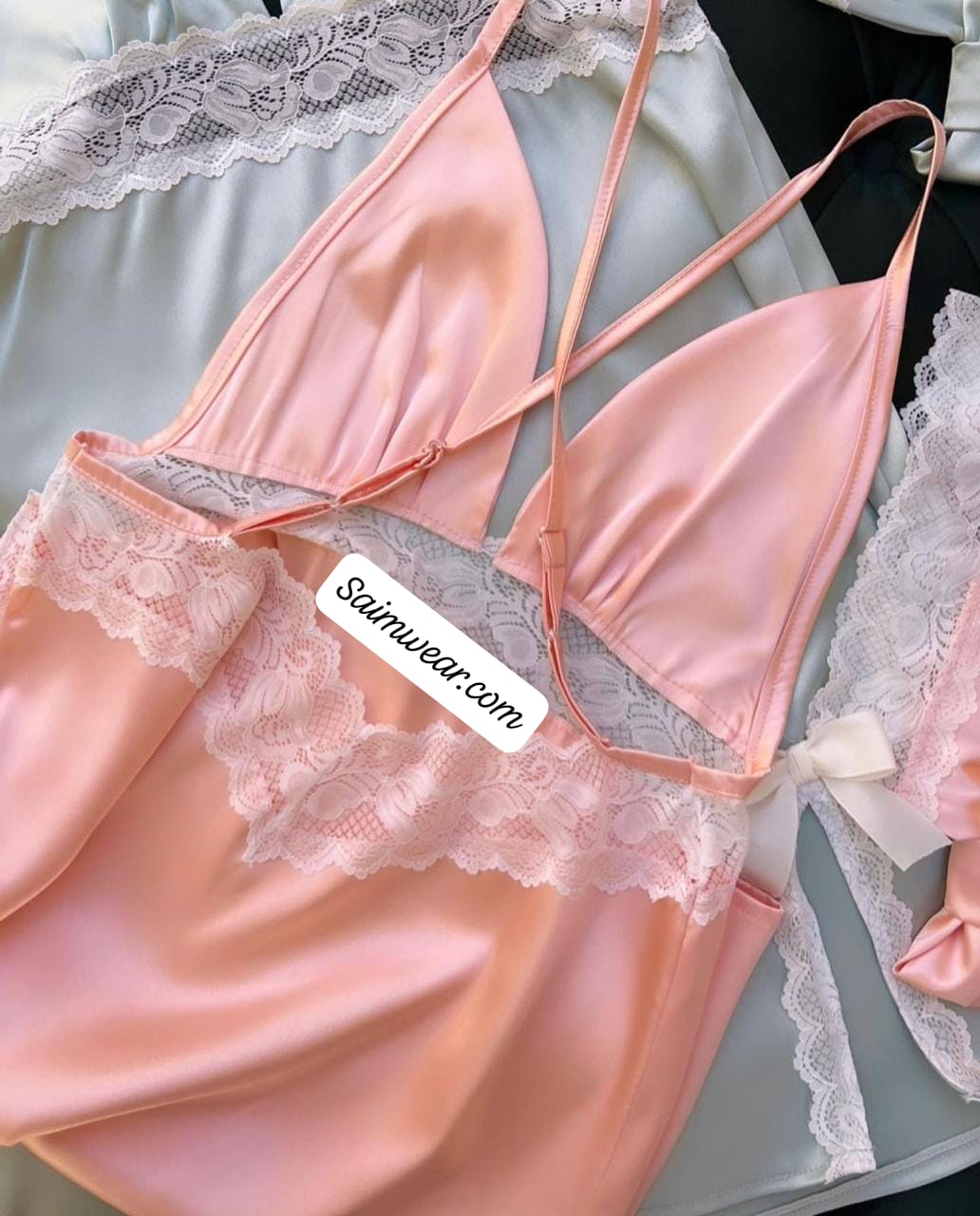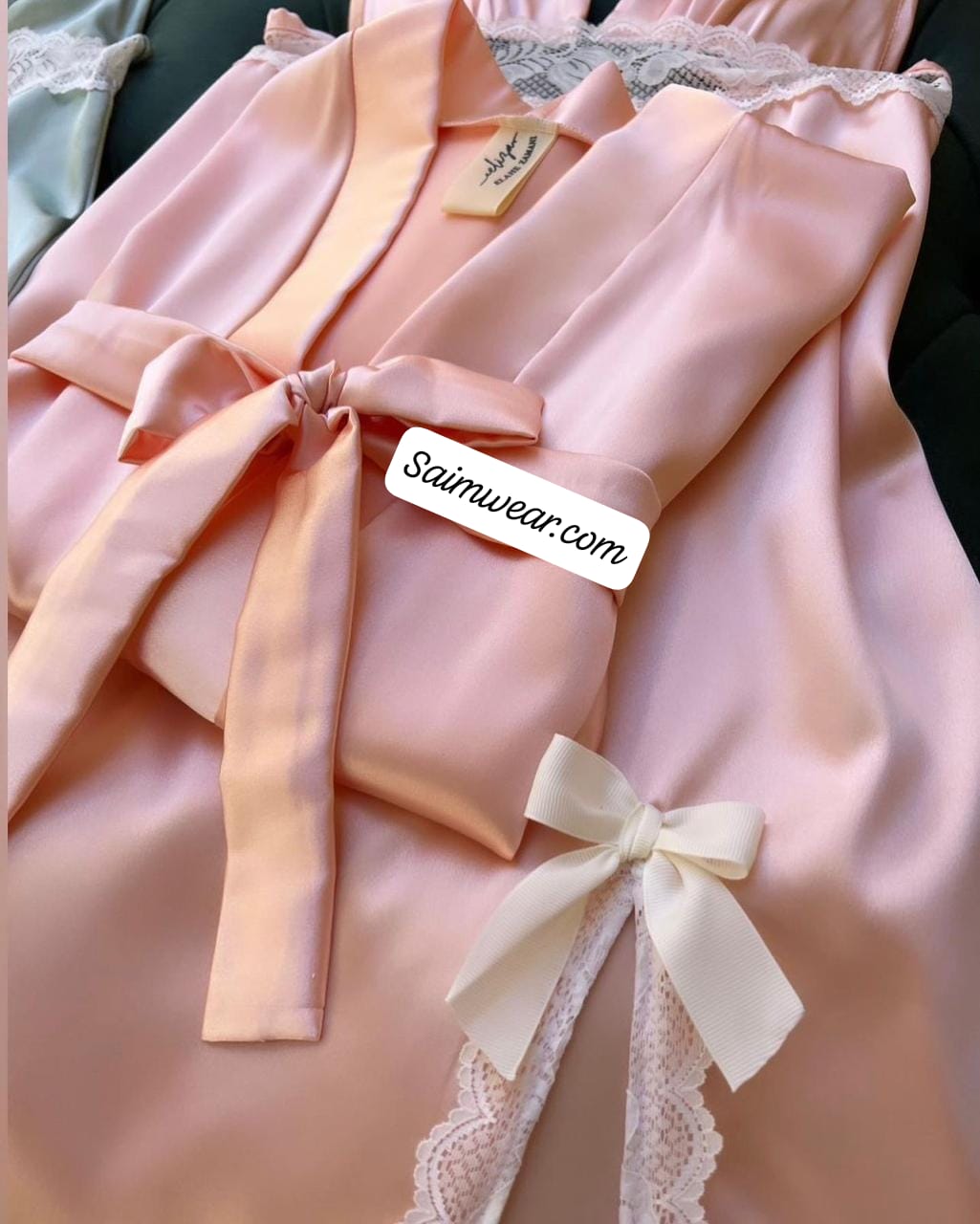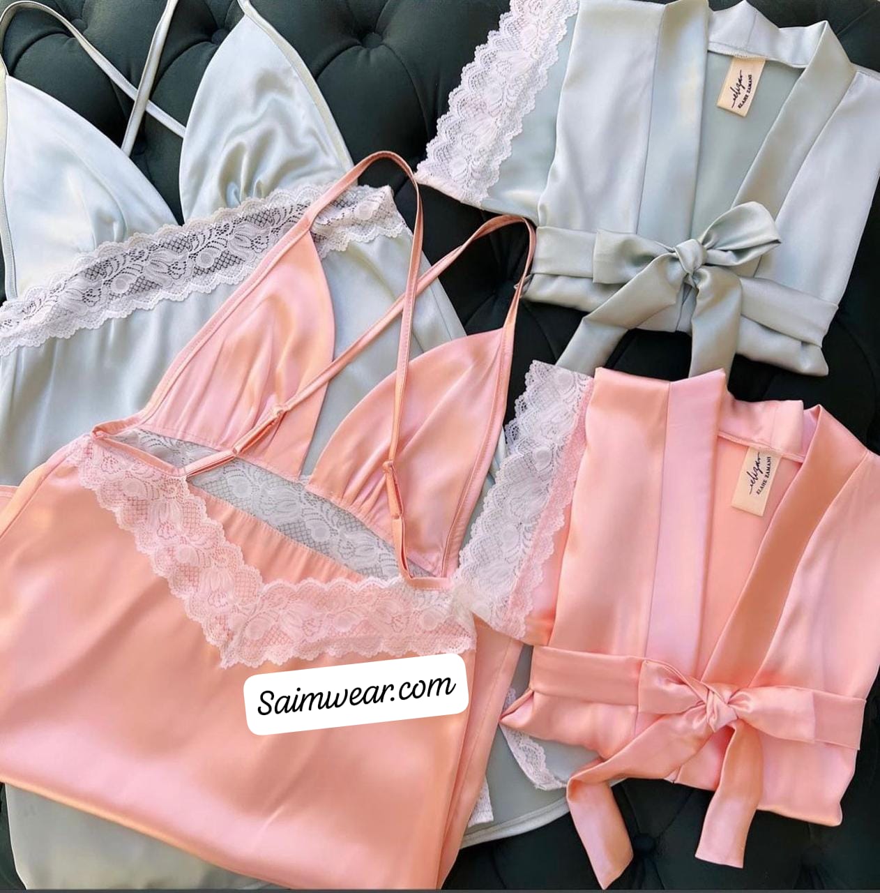 Silk Robe With Long Sleeveless Top 2 Pcs Nightwear P-70